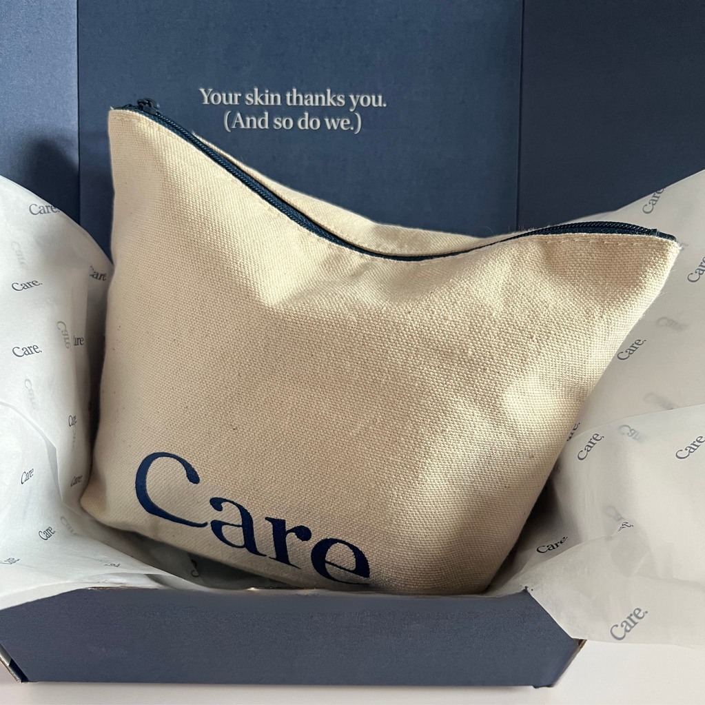 Our limited-edition Care Holiday Bag is crafted from 100% cotton and designed to hold your skincare essentials at home or on the go.