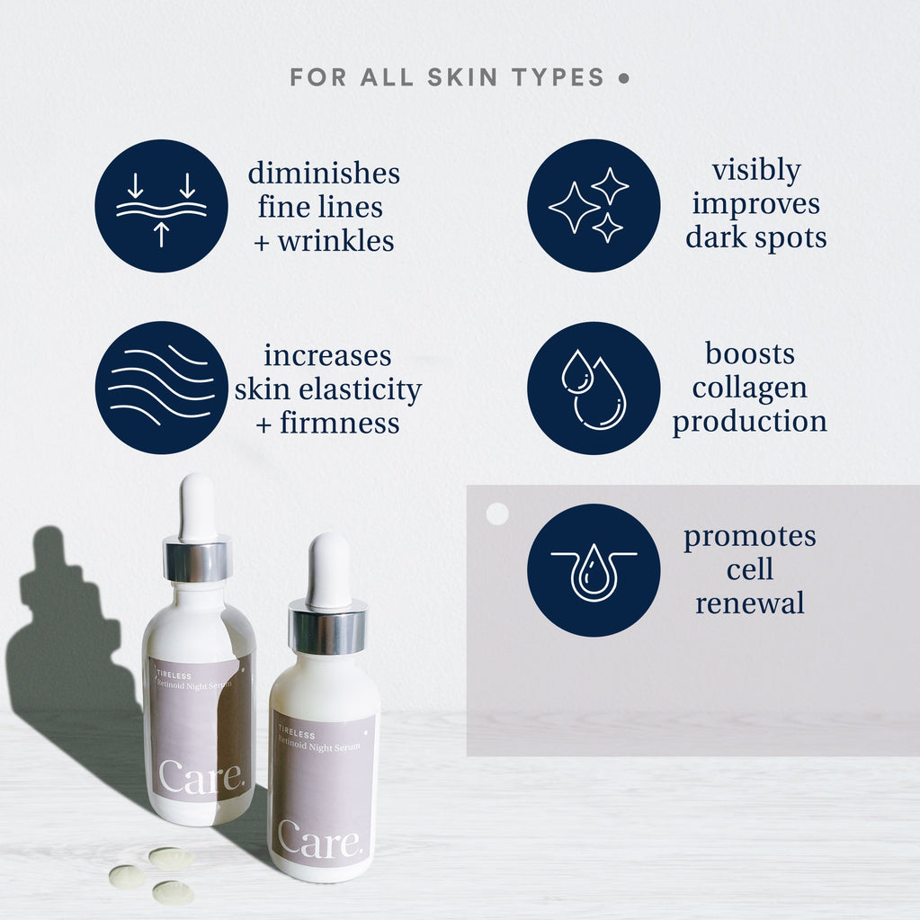 Experience the transformative power of our multi-tasking serum, designed for nightly use to reveal visibly smoother, radiant skin. Infused with Granactive Retinoid™, the gold standard in anti-aging, it promotes gentle cell renewal without the irritation often associated with traditional retinol products. This potent formula targets dark spots, uneven texture, fine lines, wrinkles, and pores.